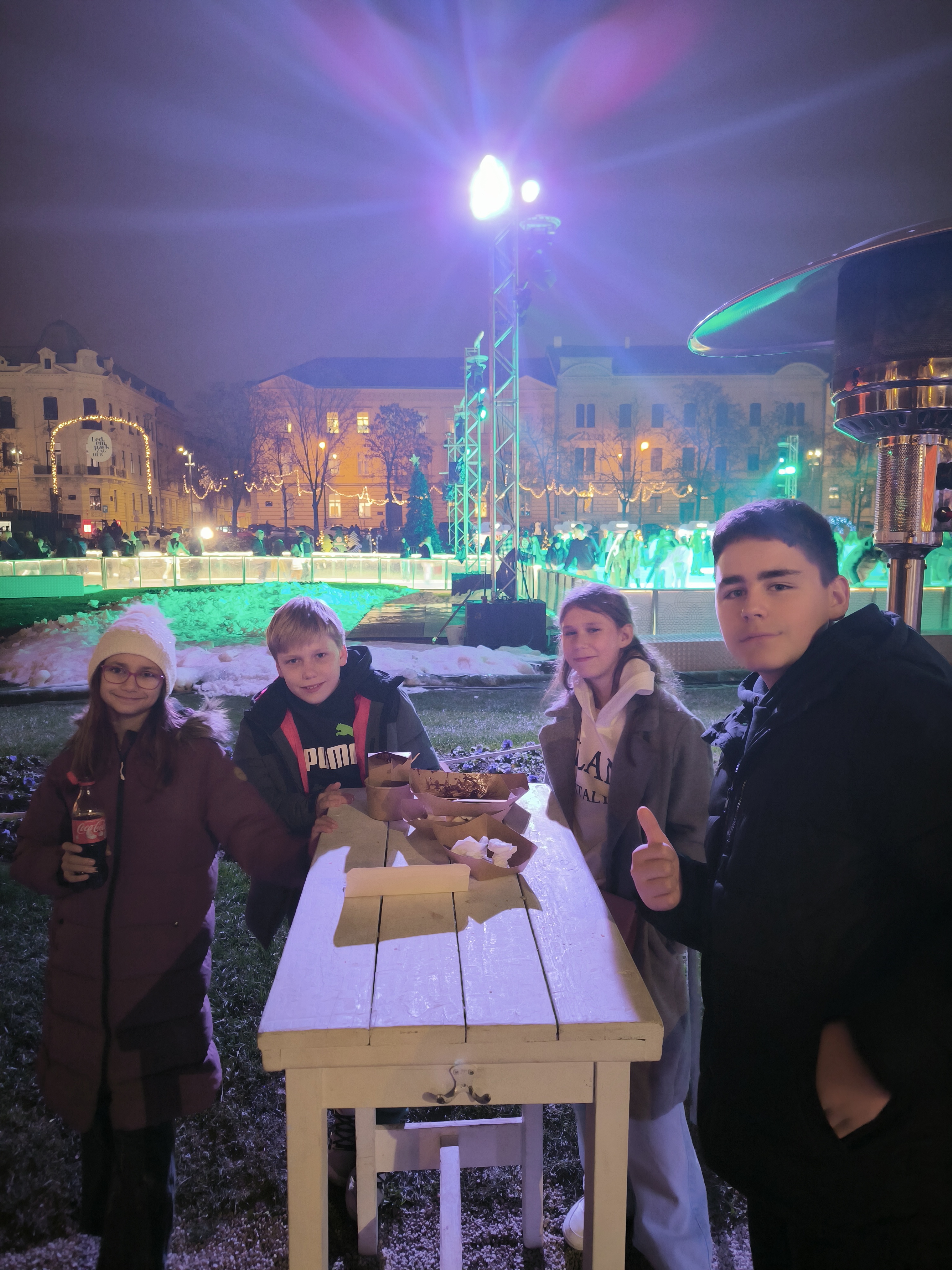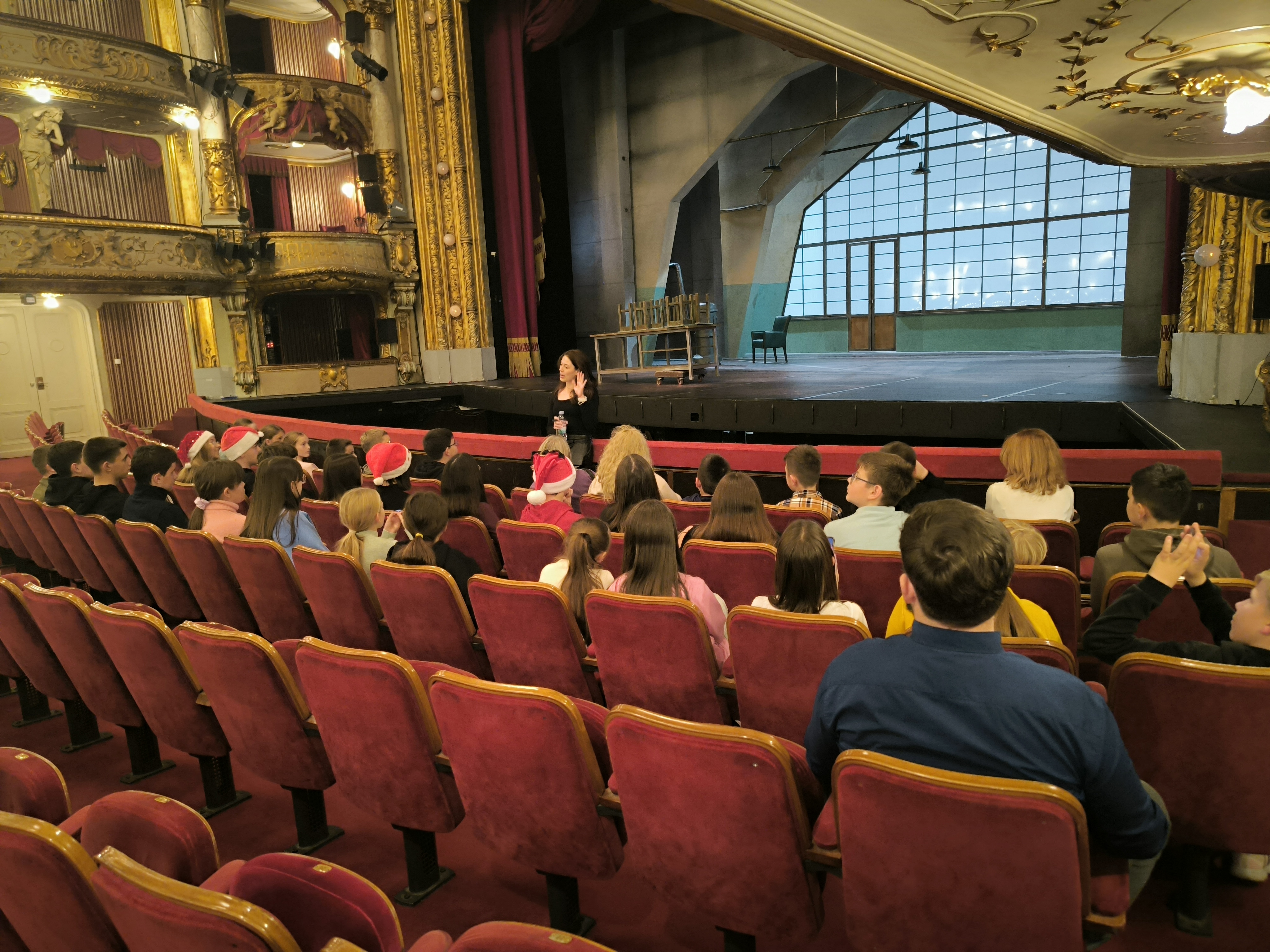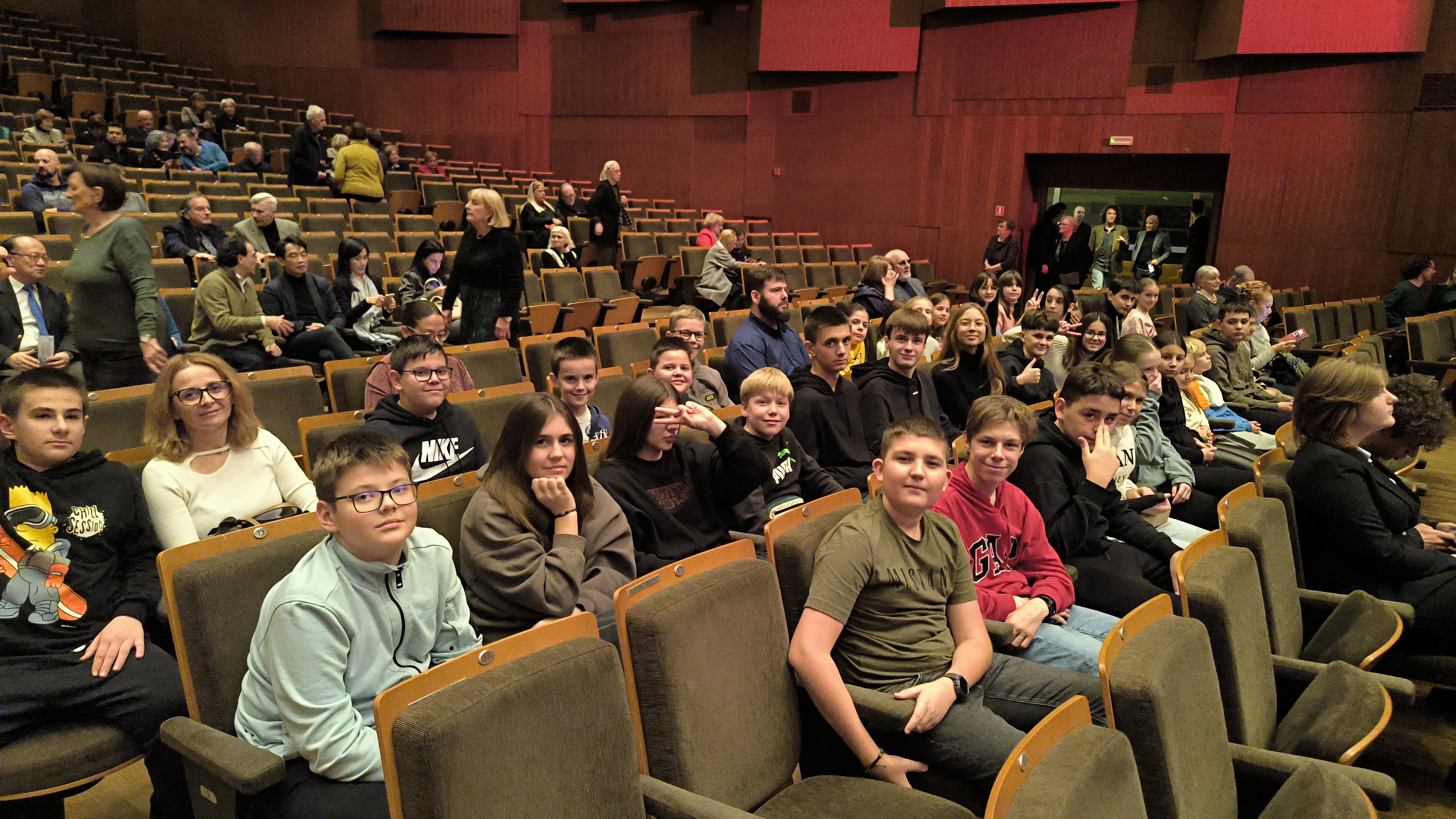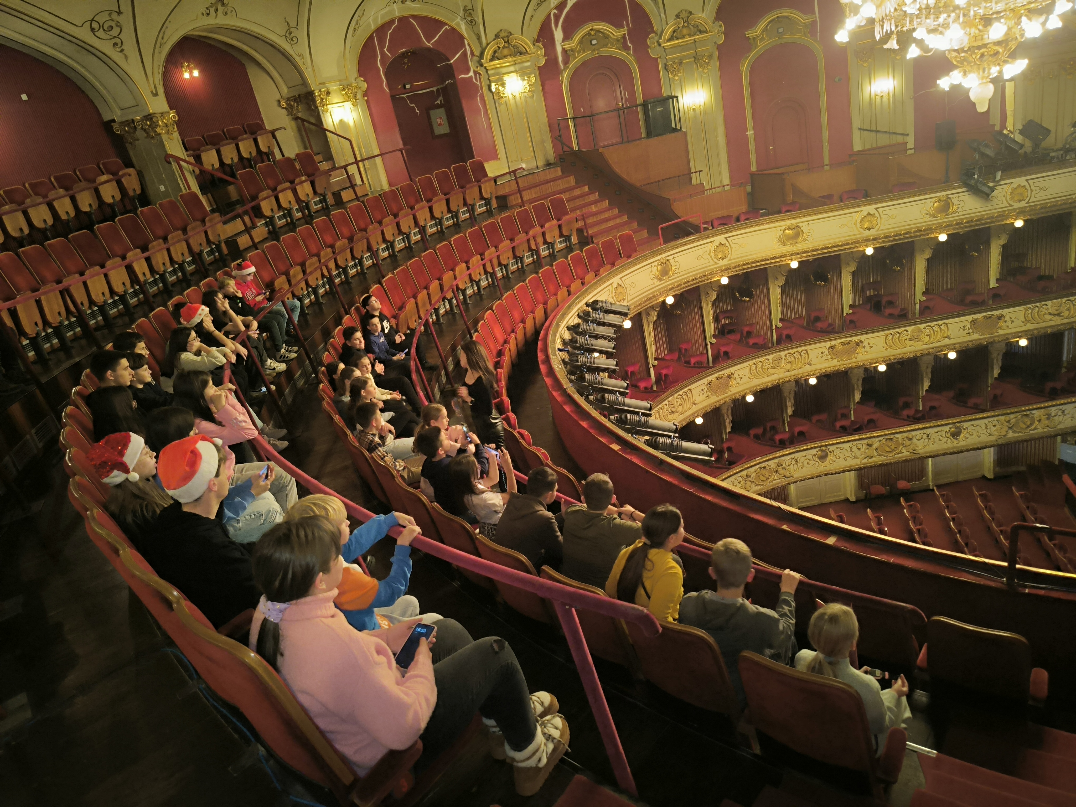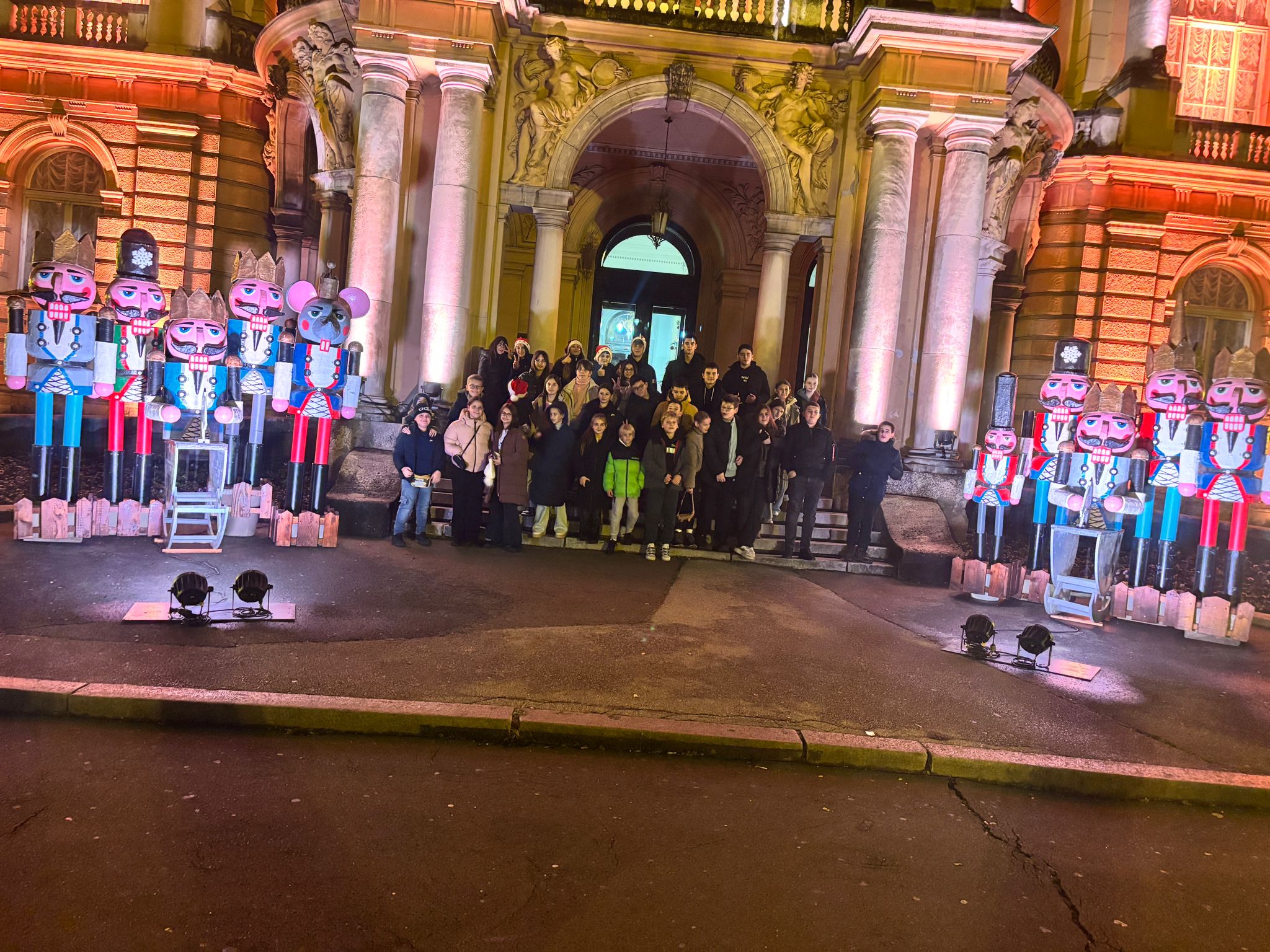 Prvi dio terenske nastave bio je posjet Hrvatskom narodnom kazalištu, jednoj od najvažnijih glazbenih institucija u Hrvatskoj. Učenici su uz stručno vodstvo razgledali povijesnu zgradu, zavirili iza kulisa, upoznali se s arhitekturom kazališta te zanimljivim povijesnim činjenicama. Posebno ih je impresionirala velika koncertna dvorana u kojoj su mogli zaviriti u prostor gdje je smješten orkestar, kao i u lože sa kojih se najbolje vidi pozornica. Nakon razgleda kazališta slobodno vrijeme iskoristili smo za posjet adventu i okrijepili se toplim napitcima. Zatim smo se uputili u Koncertnu dvoranu „Vatroslav Lisinski“ gdje smo slušali koncert Zagrebačke filhamonije i akademskog zbora Ivan Goran Kovačić.
