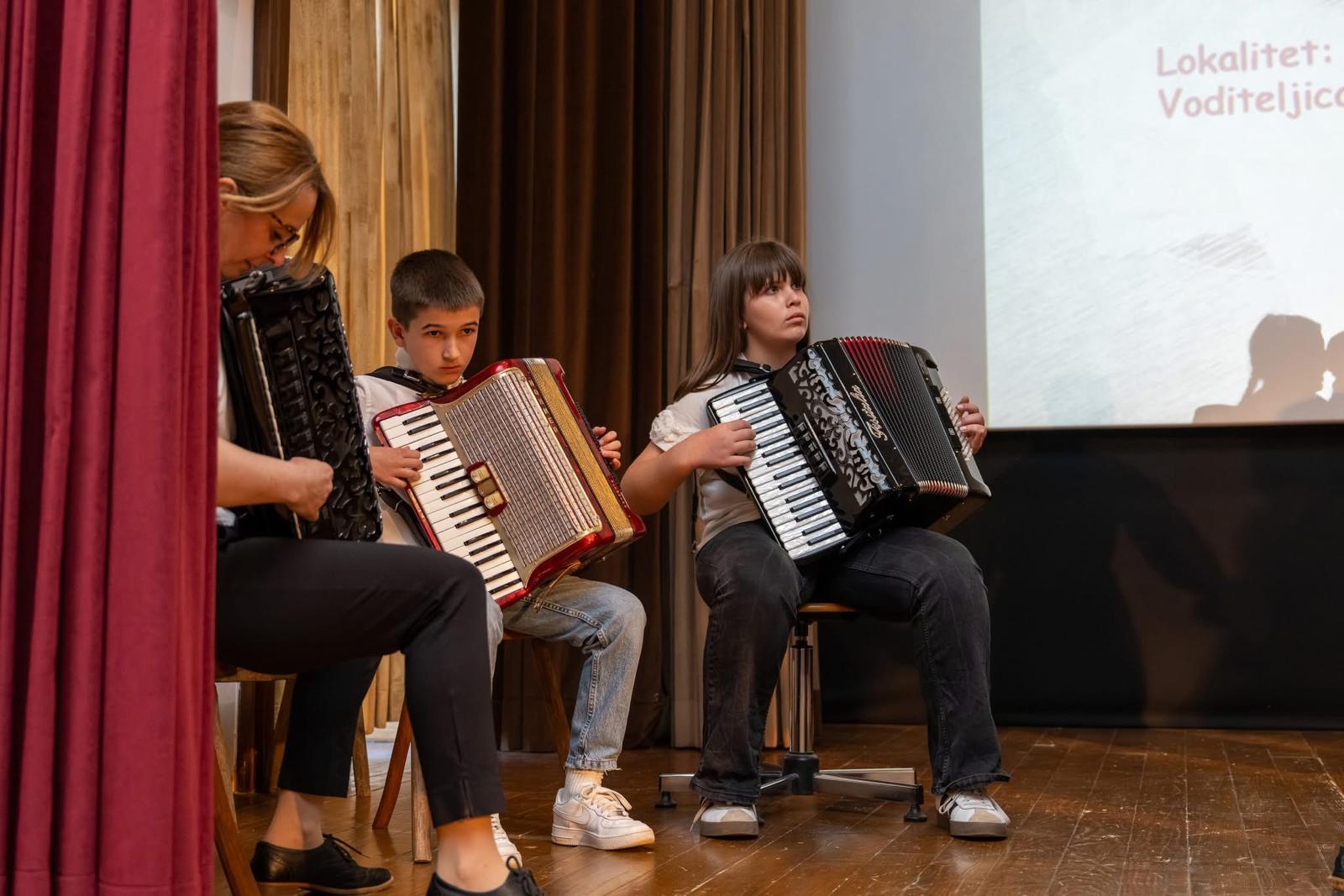Njihov nastup dodatno je obogatila glazbena pratnja učenika Osnovne glazbene škole, koji su vješto svirali harmoniku i pridonijeli autentičnom ugođaju. FS Degenija još jednom je pokazala kako se ljubav prema folkloru uspješno prenosi na mlađe generacije.