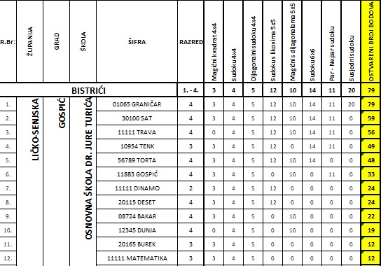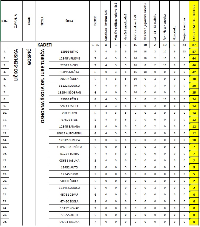 SUDOKU 2025. – školsko natjecanje